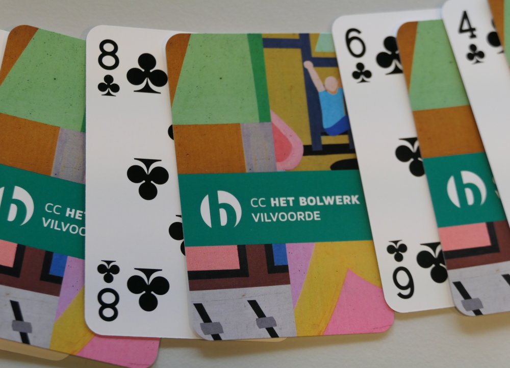 De leerlingen krijgen een gepersonaliseerd spel kaarten met als achterliggende gedachte dat Het Bolwerk voor iedereen wel een vorm van cultuur biedt. In het cc zijn verschillende cultuurbelevingen mogelijk, net zoals je met een spel kaarten verschillende spelletjes kan spelen. Ieder van ons heeft wel een voorkeursspel. Eenvoudig of complex. Alleen of met meerderen. Voor jong of oud. Kaarten is universeel, veelzijdig en raakt iedereen. Net zoals cultuur. - Een creatief en participatief cultuurmoment in de school zelf