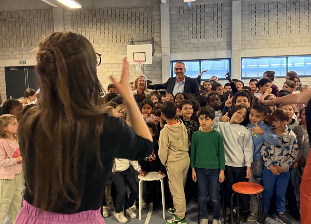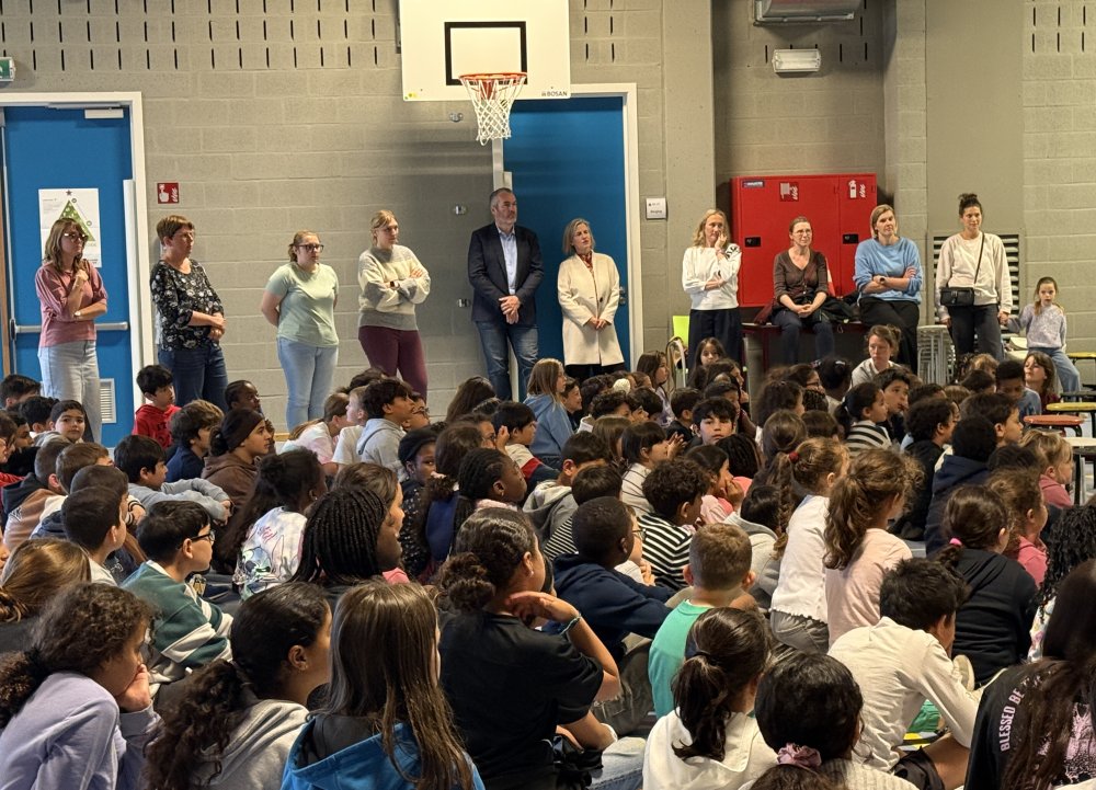 Als derde luik van de beloning geeft Koor&Stem zangworkshops. Burgemeester Jo De Ro en Schepen van cultuur Katrien Vaes waren aanwezig op vrijdag 23 mei voor het gemeenschappelijk zangmoment na de zangworkshop van Lenneke Calsius in Basisschool De Knipoog.