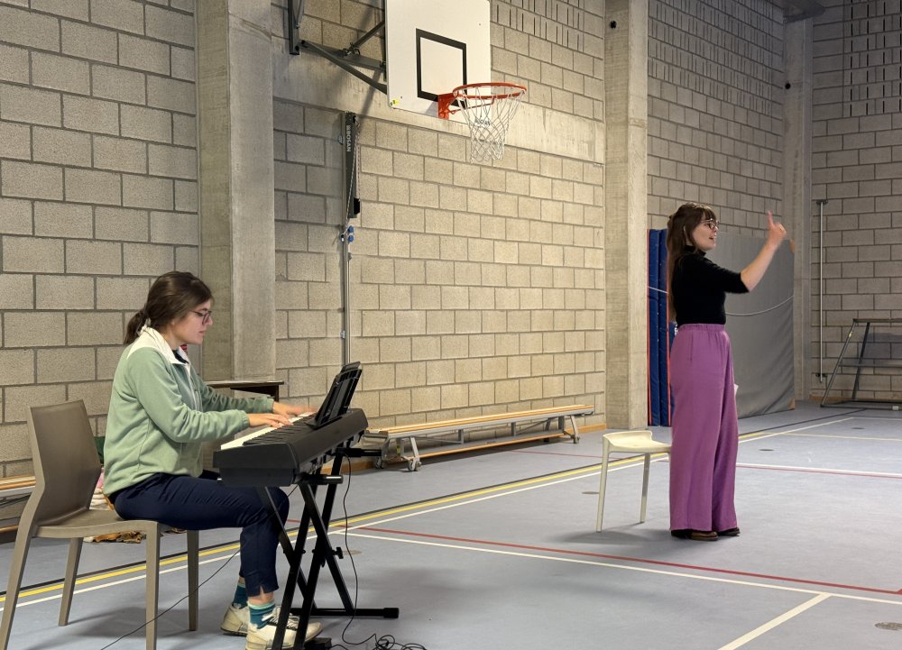 - In de lagere leerjaren worden telkens twee klassen samengenomen om het 'samenzangeffect' groter te maken. Op een speelse, toegankelijke manier én onder begeleiding van een pianist worden enkele liederen aangeleerd.
