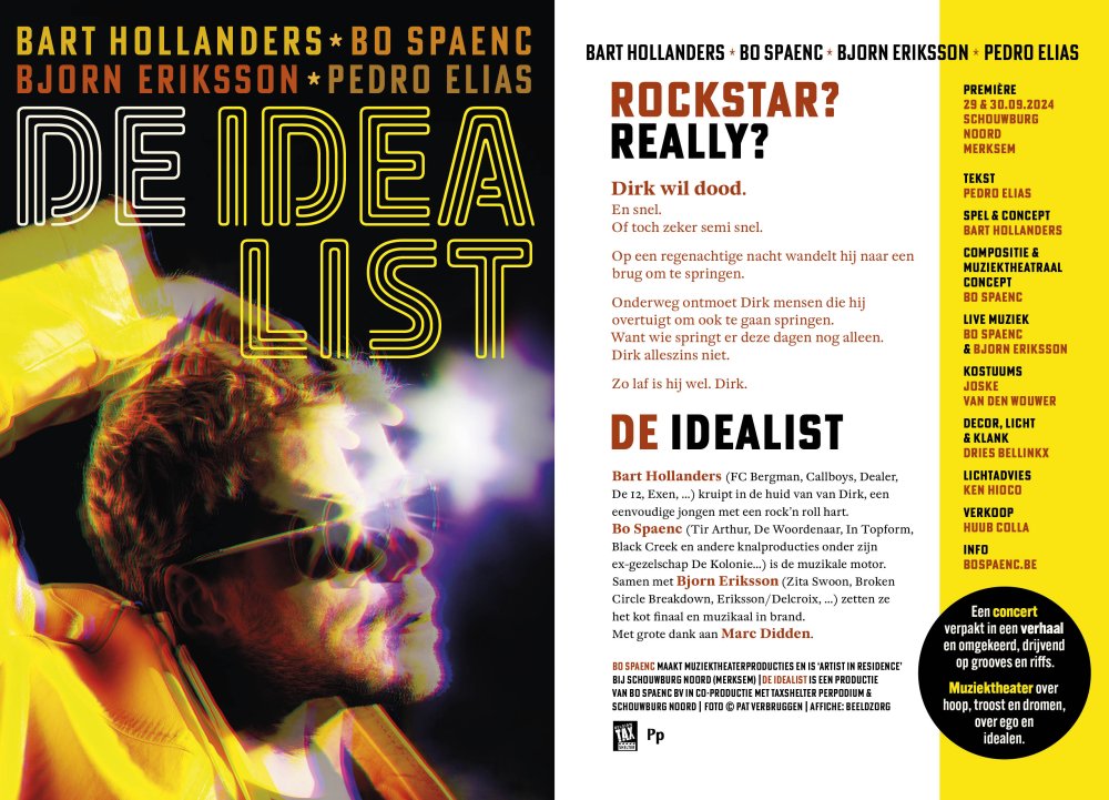 Bart Hollanders (spel/concept), Bjorn Eriksson, Bo Spaenc, Marc Rosso (livemuziek), Pedro Elias (tekst)