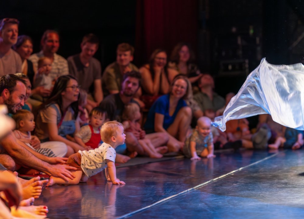 Na de voorstelling nodigen de artiesten de kleintjes uit om samen het speelveld te ontdekken. Ze mogen in, uit, langs en door het decor kruipen om de bijzondere materialen van dichtbij te verkennen.