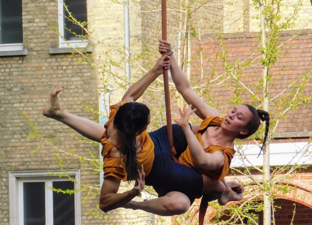 Een eigentijdse circustheatervoorstelling vol poëzie, lichtheid en verwondering, allemaal hoog boven de vloer.