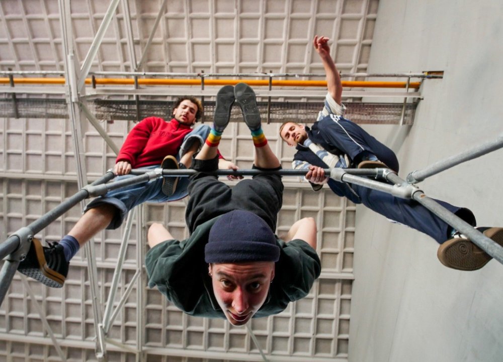 Op een mobiele parkourinstallatie nemen drie acrobaten je mee in het volledige proces van vallen en opstaan – van de voorzichtige voorbereiding tot de sprong in het diepe. En wie zegt dat een val geen succes kan zijn?