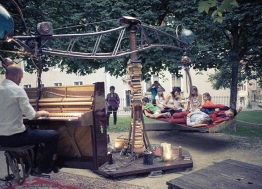 Ooit gedroomd van een magisch vliegend tapijt terwijl een pianist je vlucht begeleidt met prachtige muziek? Je ogen sluiten en de wereld even voorbij laten gaan? In de fantastische wereld van Grandet Douglas wordt deze droom werkelijkheid! Laat je verrassen door een bijzondere mobiele structuur en een piano die zo licht is, dat hij de zwaartekracht tart. Zittend op een comfortabel vliegend tapijt, ontvouwt het wonder zich voor je ogen …