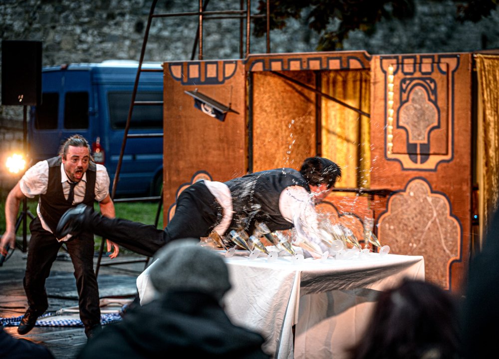 Alles staat klaar voor een geslaagde openingsplechtigheid van de cocktailbar. De champagne staat koud. Maar een ongeluk schuilt altijd in een klein hoekje ... De twee obers nodigen je uit voor een apocalyptische mix van catastrofisch jongleren, fysieke comedy en vuurwerk. Een hilarisch mengsel van baldadige slapstick!