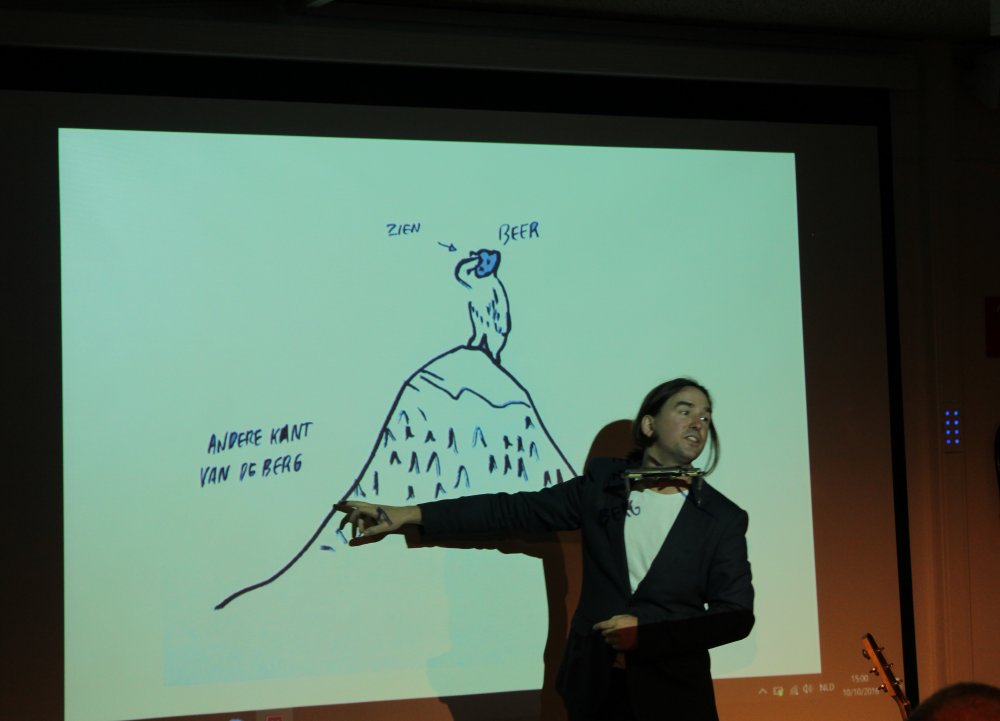 Een intieme, interactieve voorstelling, vol humor, visueel prikkelend met prachtige tekeningen.