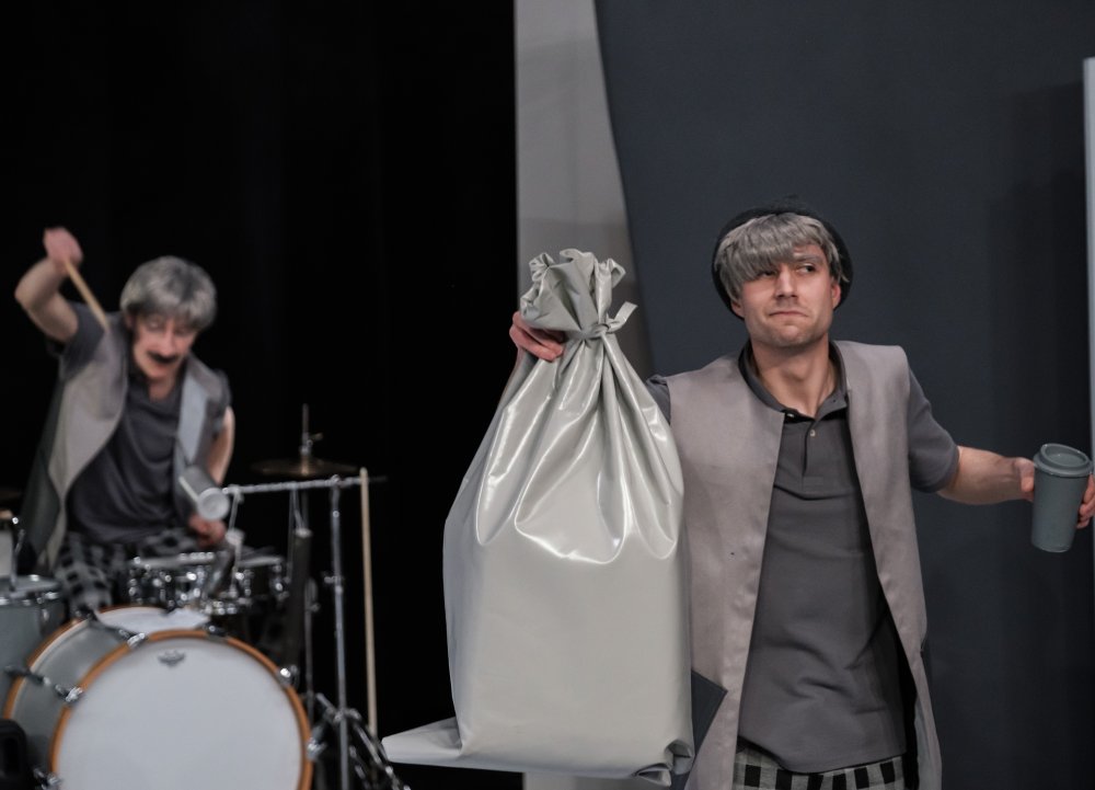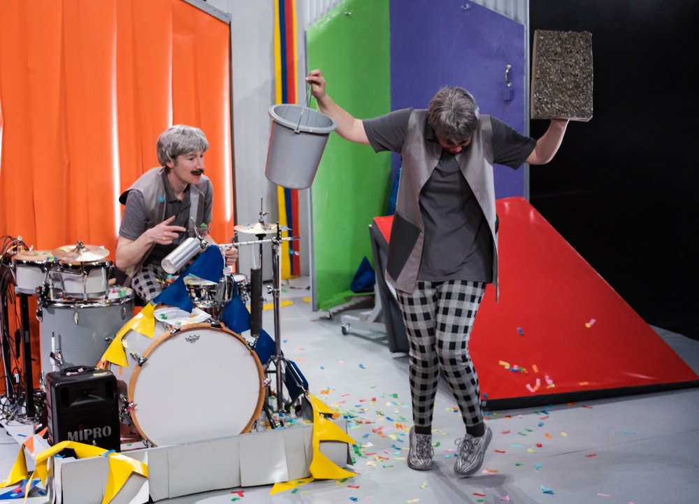 'Kladderadatsch' is als een kijk- en zoekboek waarin grijze figuren worden gevolgd in hun dagelijkse leven. Tot hun wereld grondig door elkaar wordt geschud door de komst van kleur.