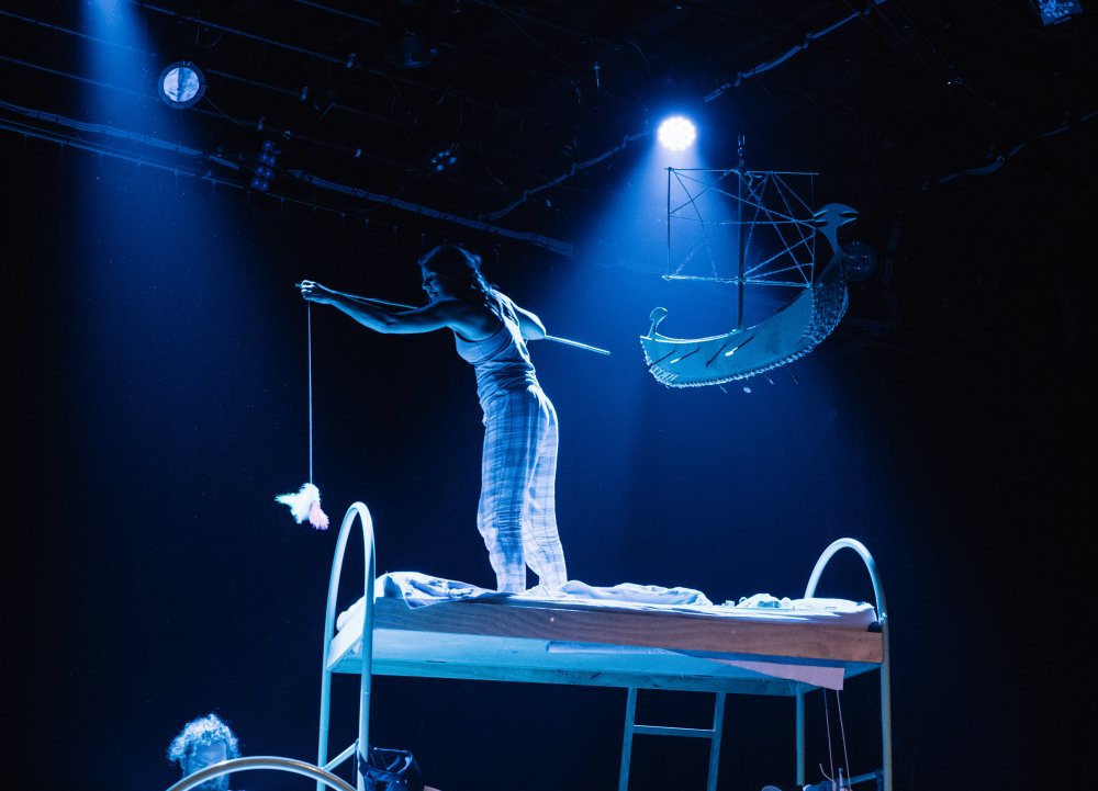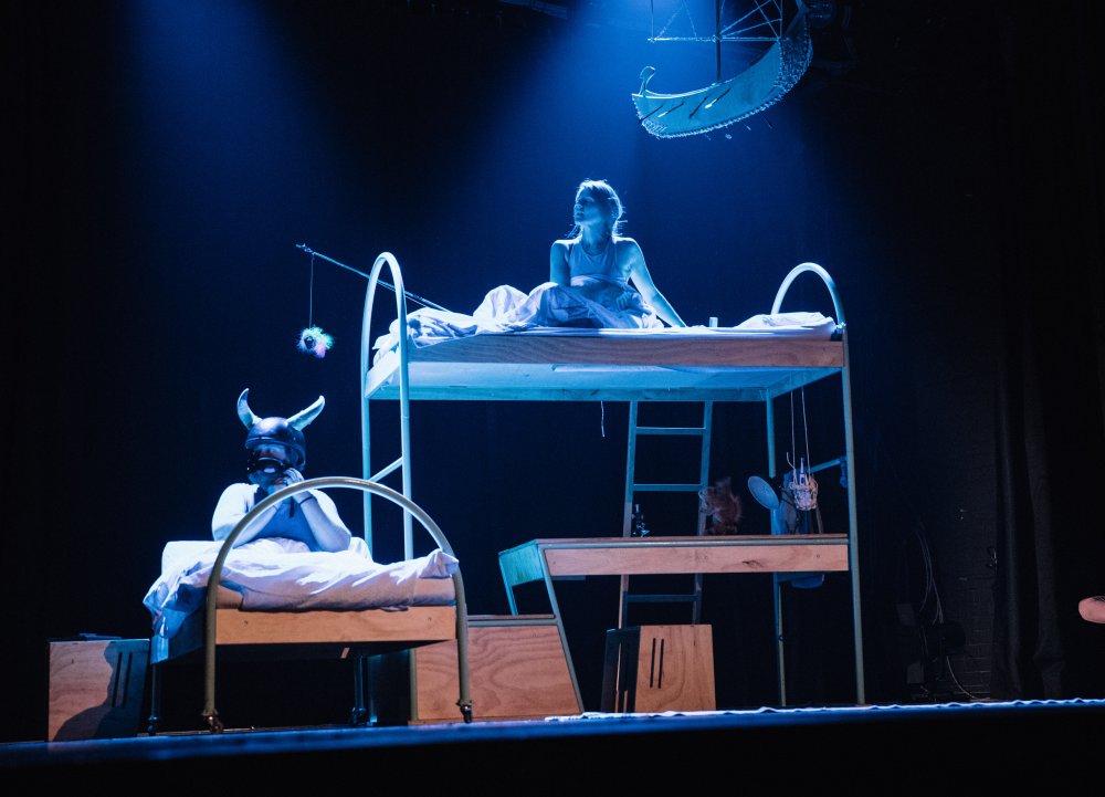 Een heerlijk speelse voorstelling over kattenkwaad realtime voor het slapengaan, over Viking Vibes, het bezig berggeitje en Rudy, de nieuwste app van Mark Zuckerberg.