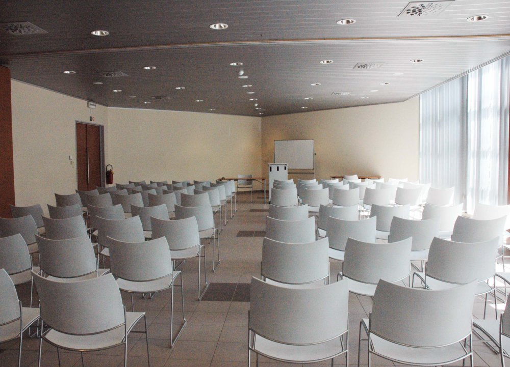 Het auditorium is een modulaire ruimte die in een deel (groot) of twee delen (A of B) gebruikt kan worden.